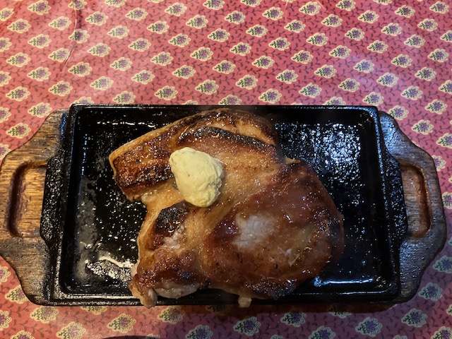 味付けはあえてシンプルに塩。塩だけで焼き上げた厚切りの豚肉の上に、バターがぽんとのって出てくる。これがもう、見た瞬間に「量、間違えてないか?」と思うほどの迫力だ。付け合わせすら一切ない肉だけに凄みすら感じさせる逸品である。